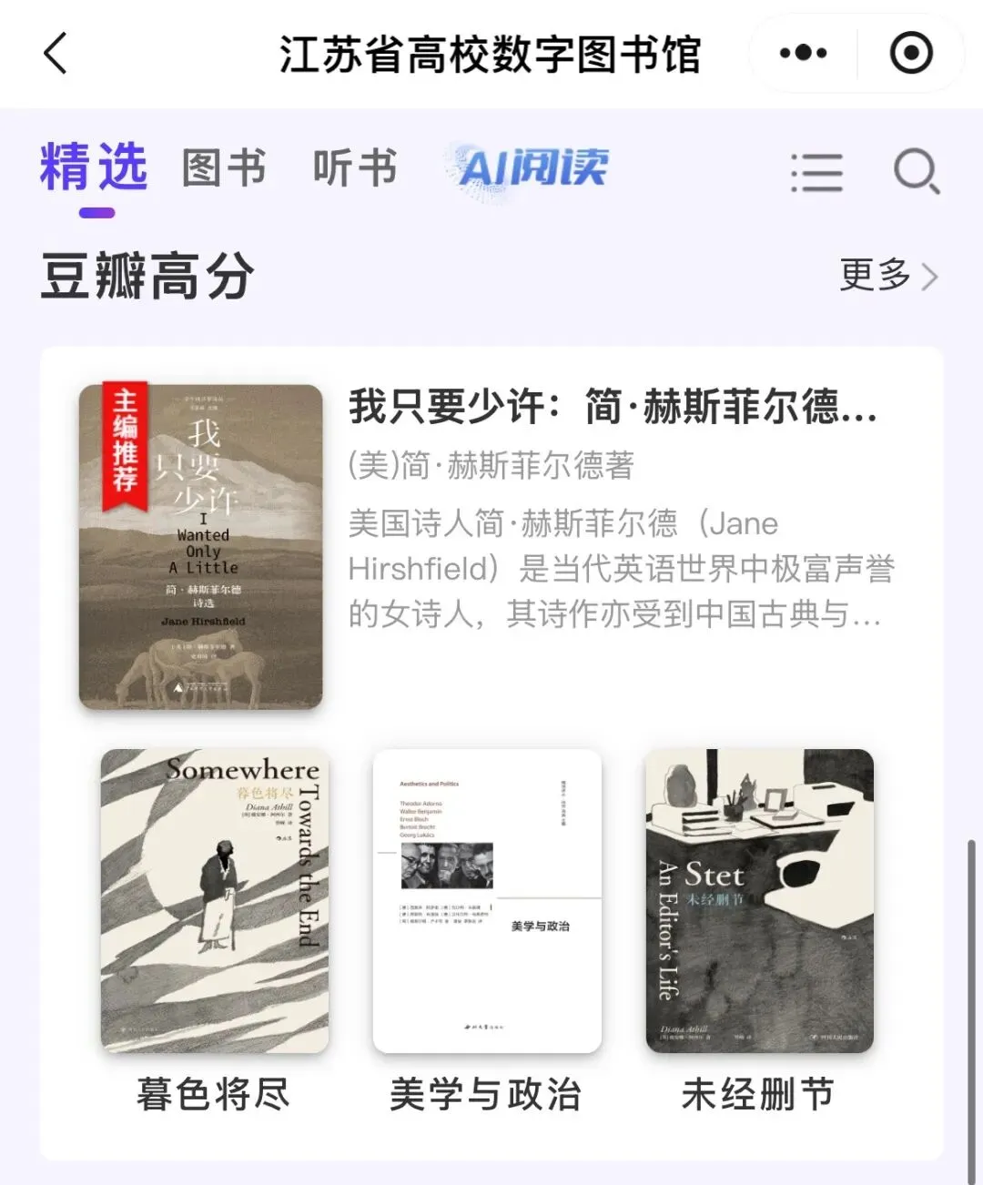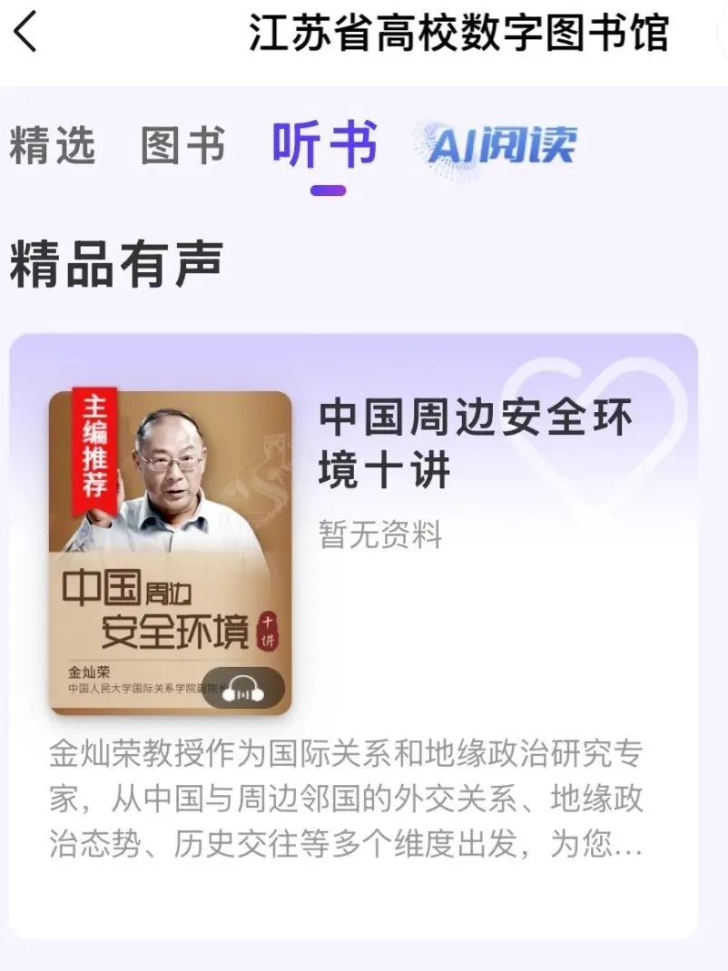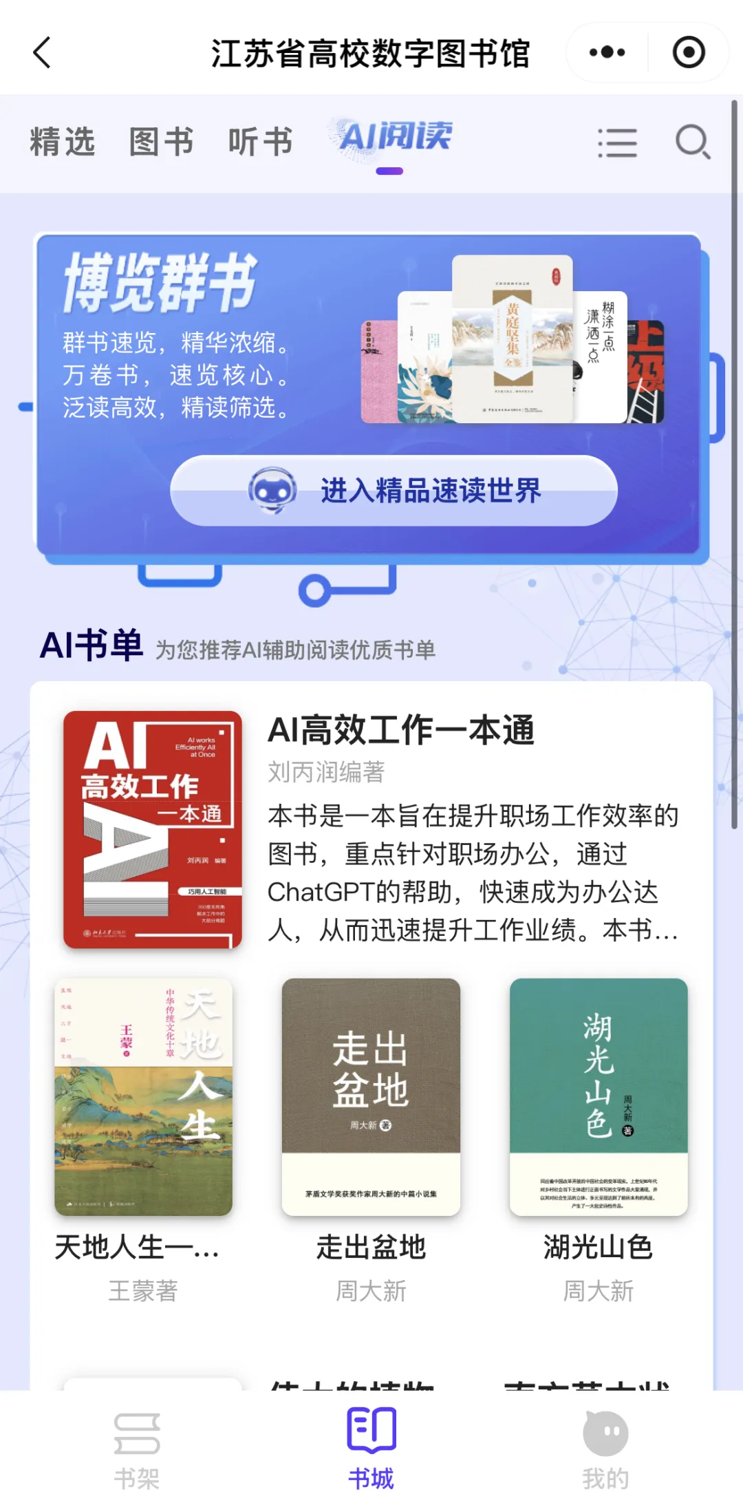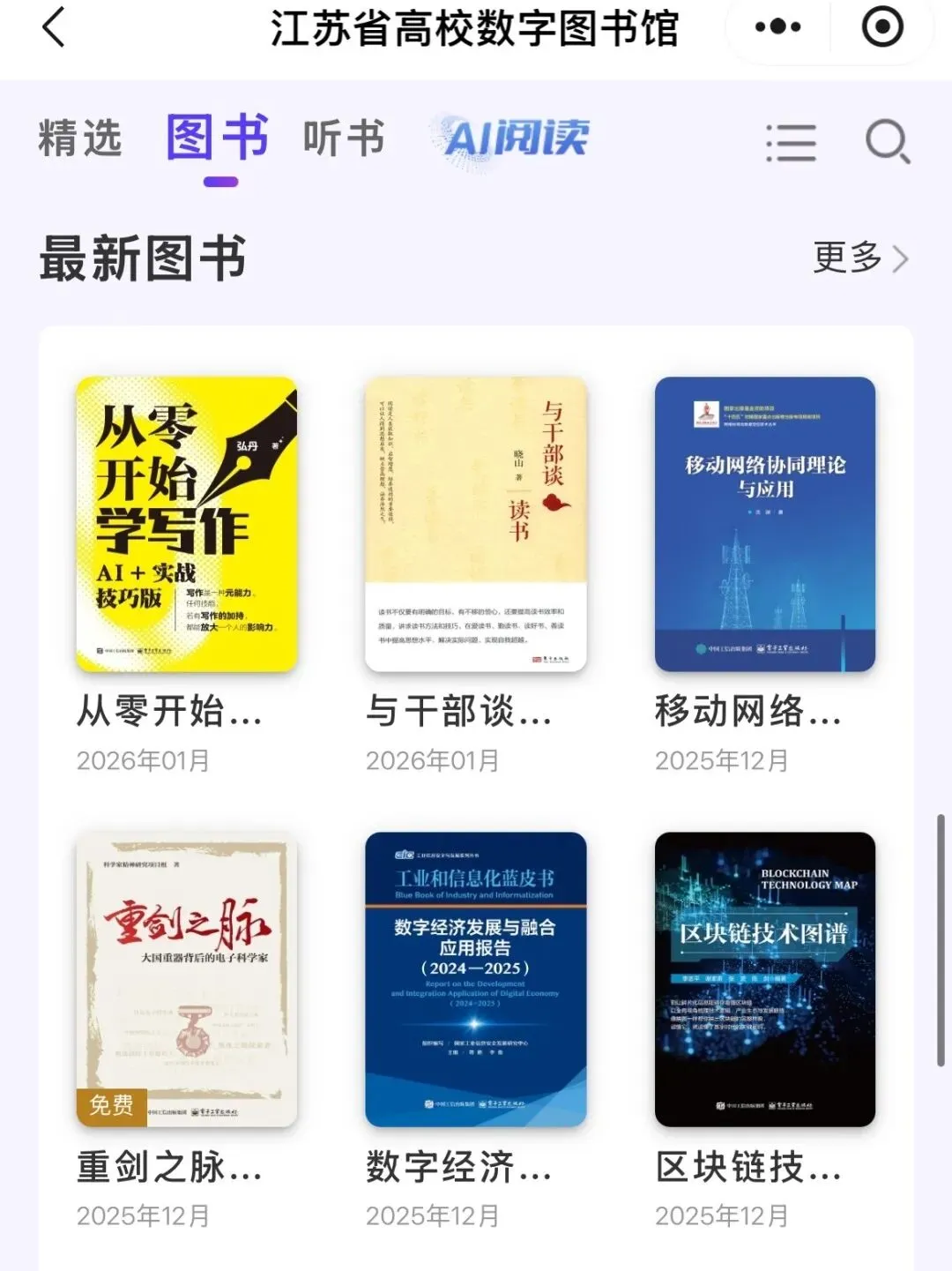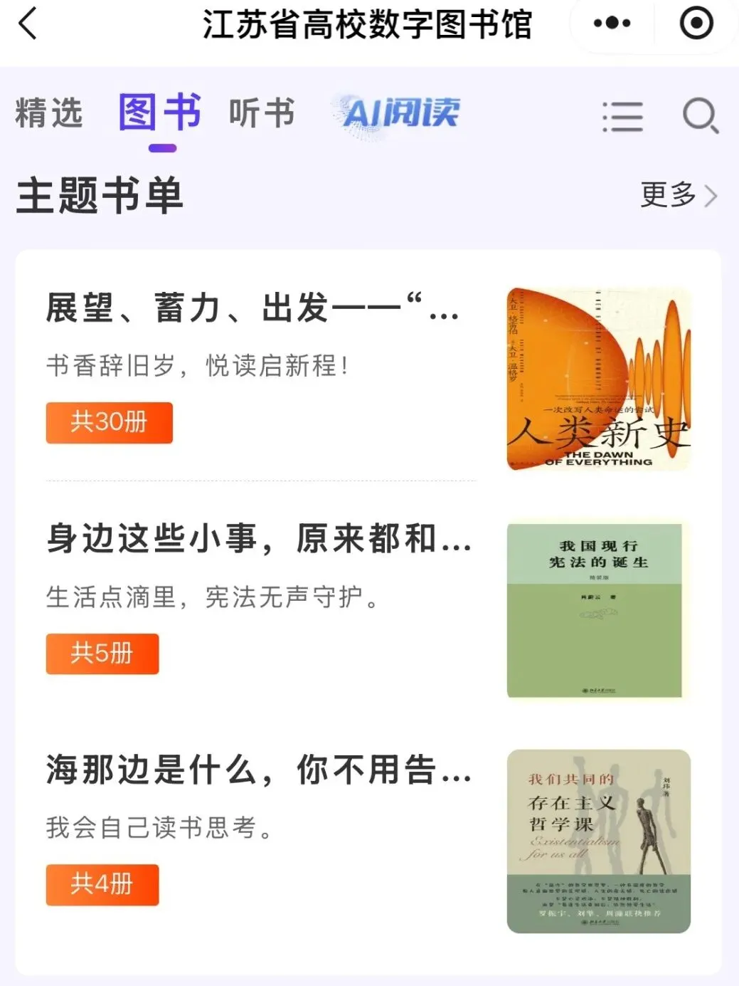通过江苏省高校数字图书馆(JALIS),我们可以轻松访问中文在线海量电子资源,50万册电子图书、7万集听书、千余种期刊,还有基于AI大语言模型的“中文智言”智能对话系统,将为你的学习、科研和生活带来前所未有的便利,全面助力高校师生在学术探索、知识积累与学科发展上取得更加卓越的成果。