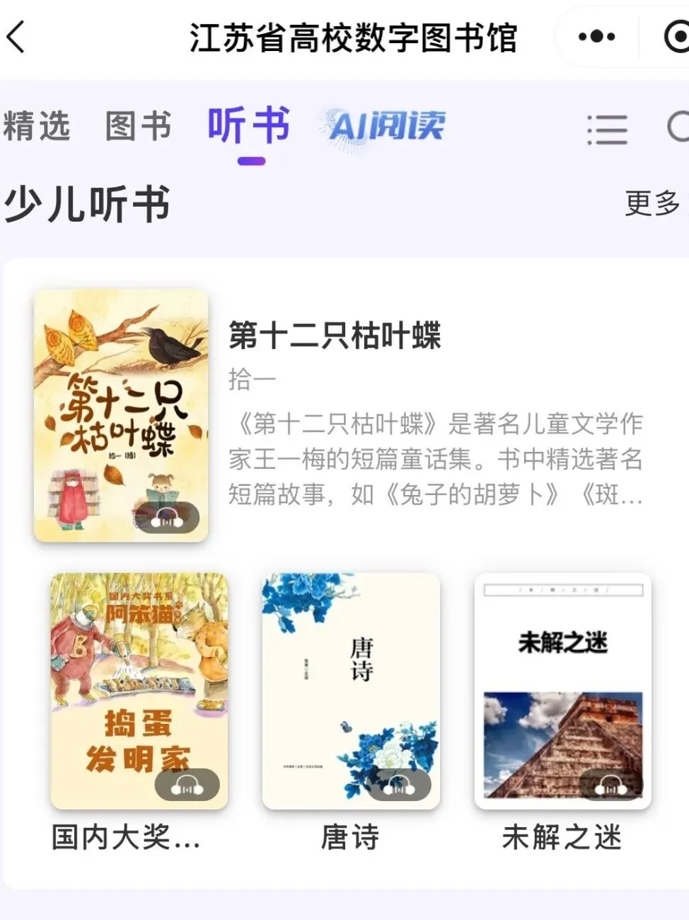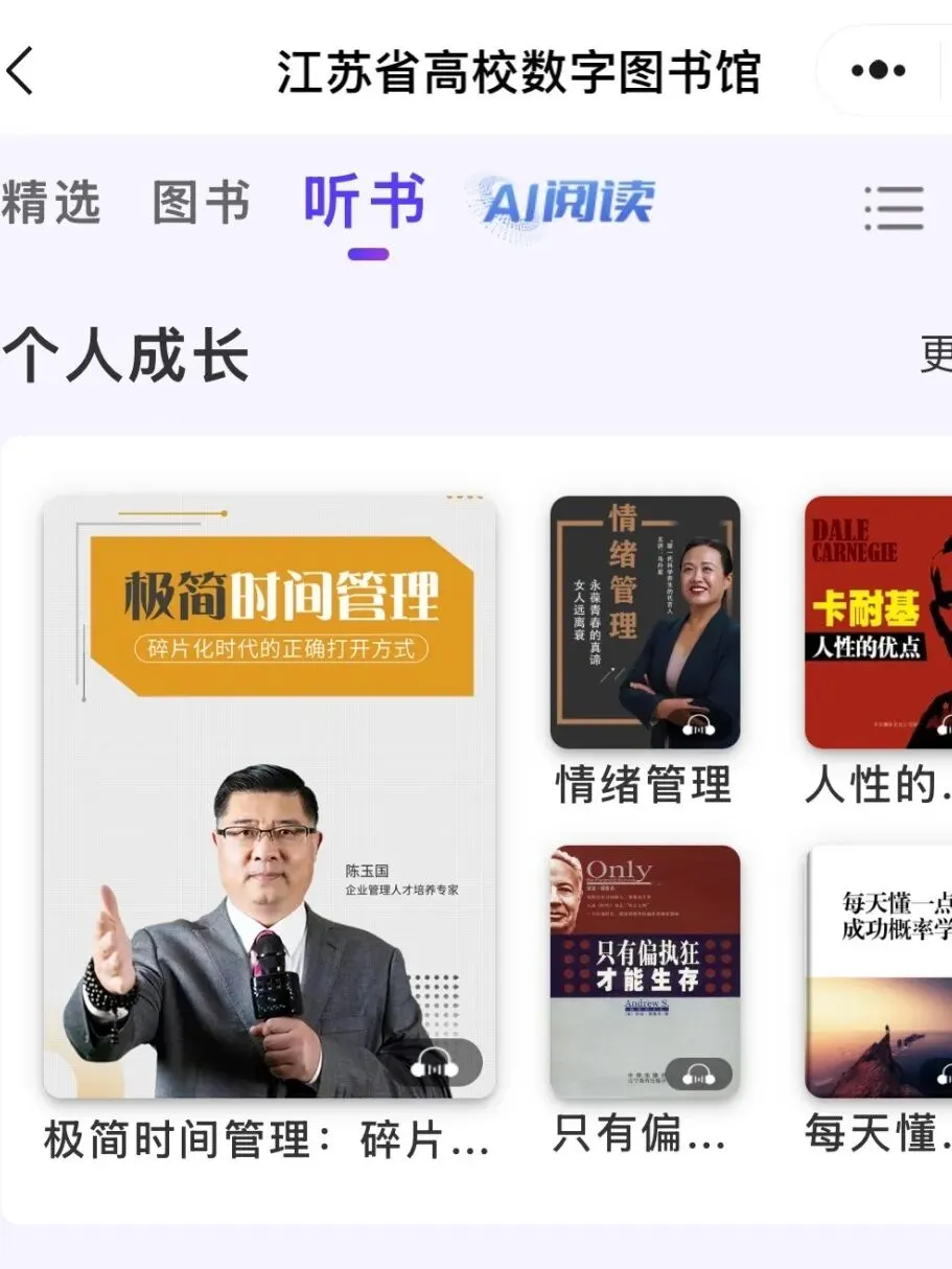 中文在线平台提供7万余集听书资源,涵盖理学、经济学、文学、哲学、艺术学、管理学等13大类。不仅有专业类听书,更有国家一级播音员根据近年来畅销经典文学作品录制的有声读物,为高校师生提供了丰富多样的阅读体验。