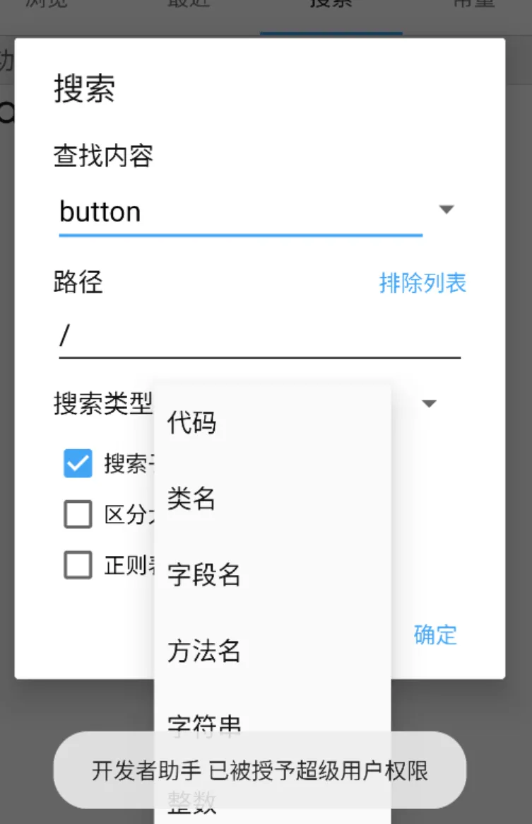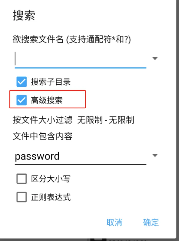 3.点击高级搜索相当使用全局搜索(搜索应用中的全部文件)