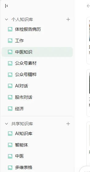 而ima知识库可以按照领域、需求,分类建立专属知识库。不是按时间、按工具死板划分,而是完全贴合我的生活节奏:AI 学习知识库、职场工作知识库、中医养生知识库、公众号知识库……每一类内容,都有自己专属的收纳空间。