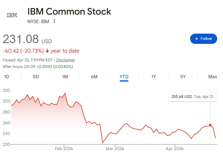今年2月,IBM股价暴跌超过20%,创下数十年来最大单月跌幅,此前人工智能开发商Anthropic ( ANTH.PVT ) 发布了一款旨在实现IBM大型机上运行的编程语言现代化的工具。