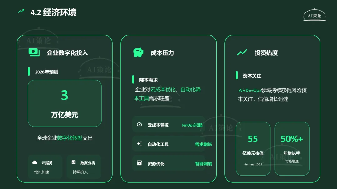 2. 经济需求:全球企业数字化转型支出超3万亿美元,云成本优化、自动化降本工具需求旺盛