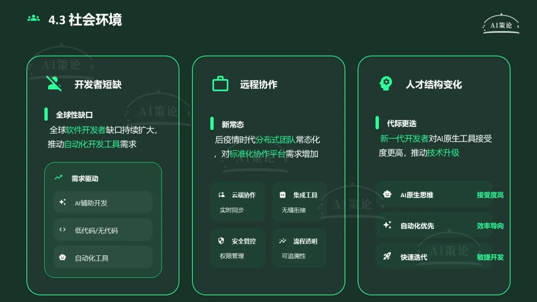 3. 社会变革:全球开发者缺口持续扩大,后疫情时代分布式团队常态化,对AI原生工具接受度大幅提升
