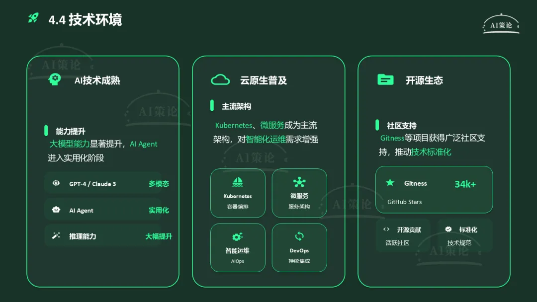 4. 技术成熟:大模型能力显著提升,AI Agent进入实用化阶段,云原生架构成为主流