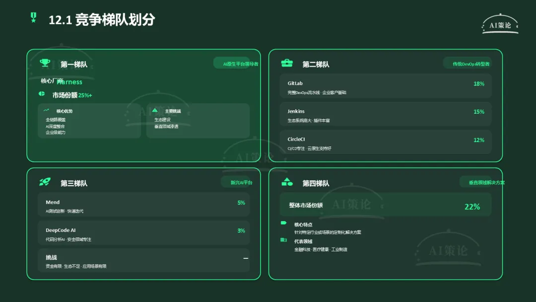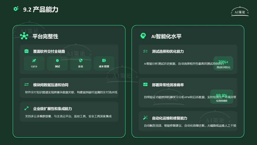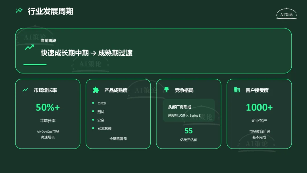 趋势二:平台整合加速,从工具级向生态级演进CI/CD、测试、安全、成本管理等工具加速整合,平台厂商价值提升,垂直工具厂商面临整合压力。
