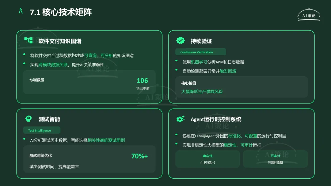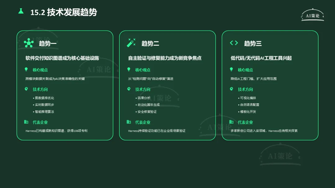 1. 软件交付知识图谱将软件交付全过程数据构建成可查询、可分析的知识图谱,实现跨模块数据关联,提升AI决策准确性。Harness已申请106项专利。