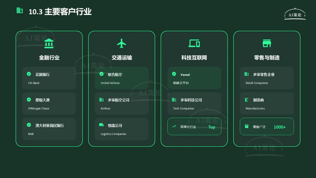 客户基础扎实:服务1000+家企业客户,包括联合航空、花旗银行、摩根大通等行业领导者,客户续约率95%+。