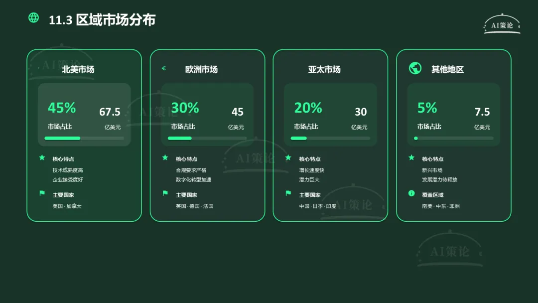 从区域看,北美占45%,欧洲30%,亚太20%但增速最快,潜力巨大。