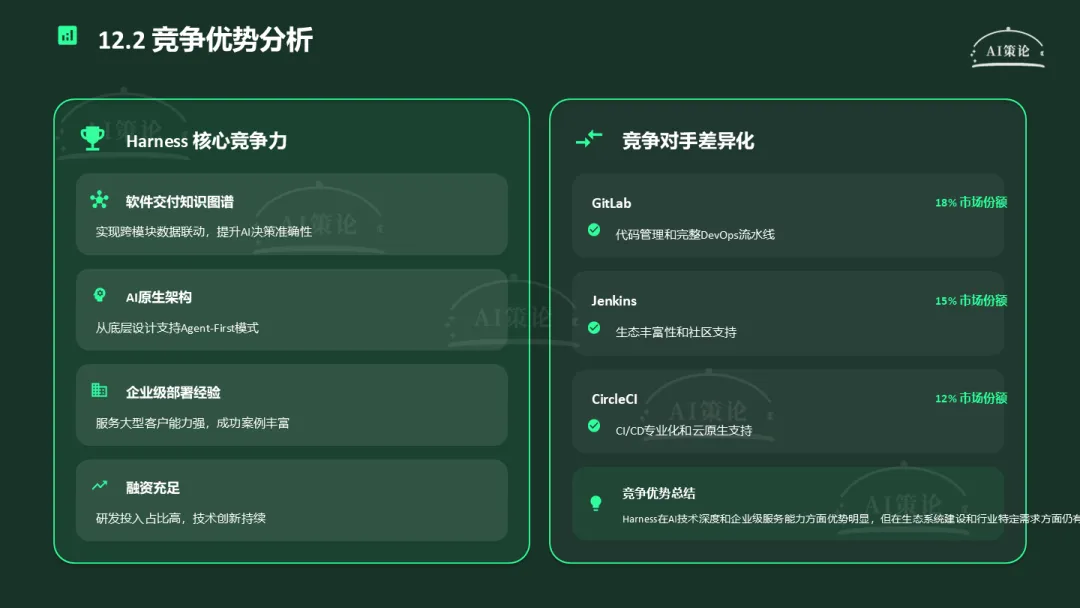 Harness的核心竞争力在于:软件交付知识图谱、AI原生架构、企业级部署经验和充足的资金支持(55亿美元估值)。