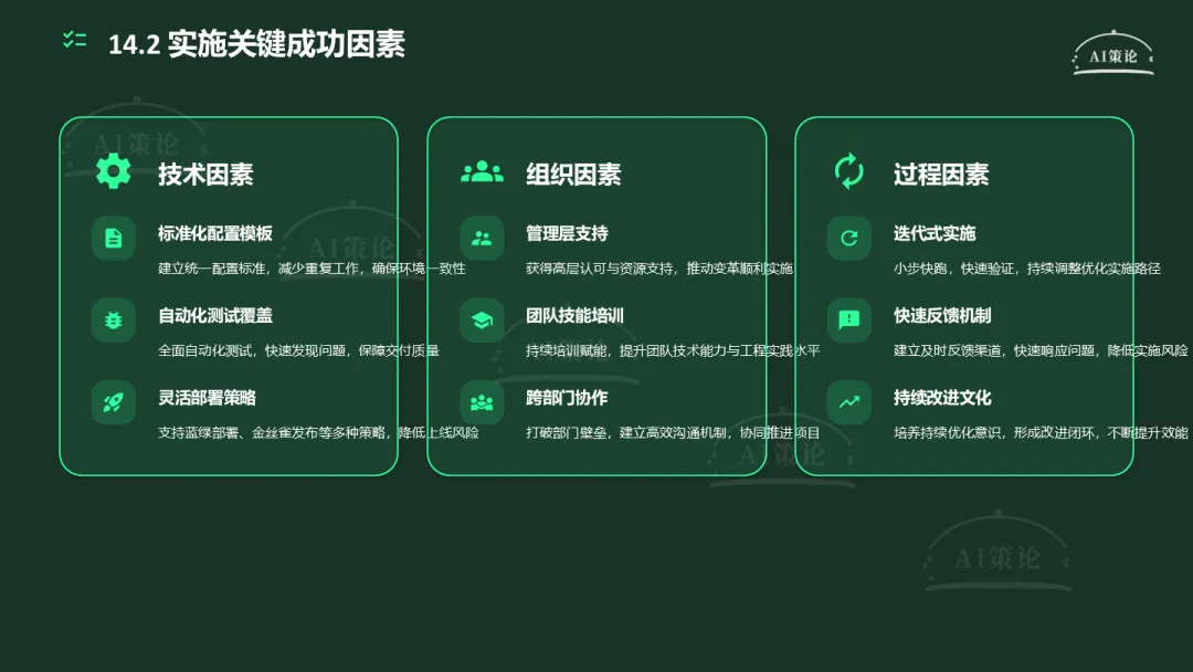 技术因素:标准化配置、自动化测试、灵活部署 -