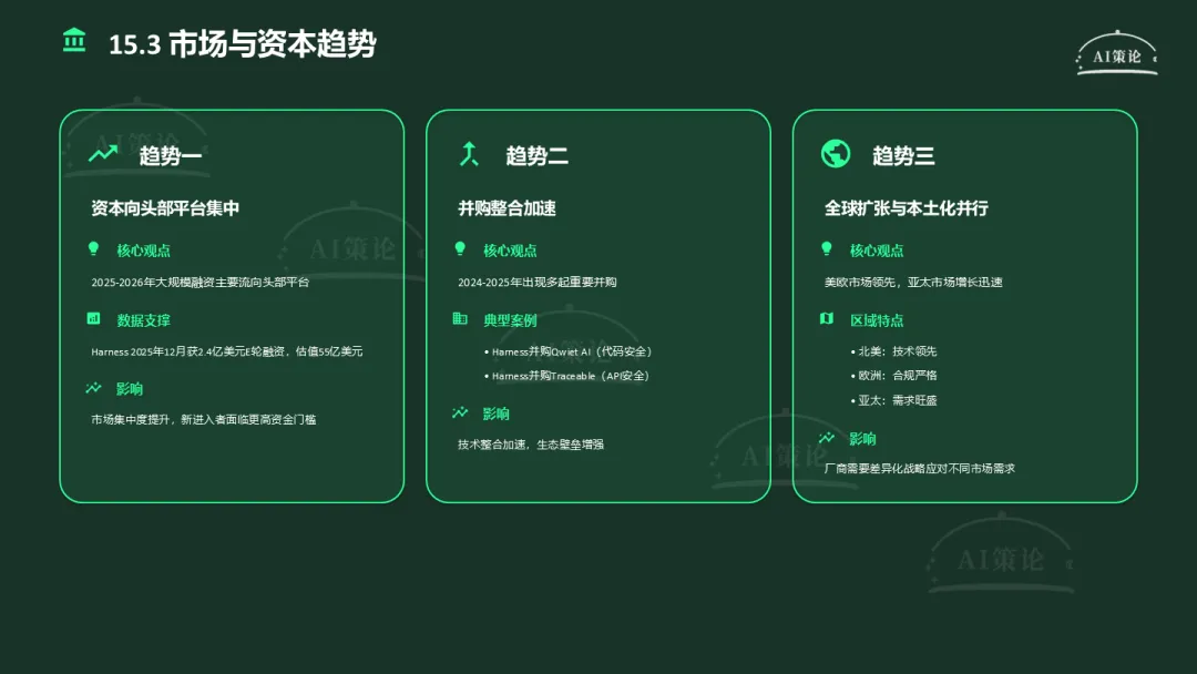 资本向头部集中:Harness 2025年12月获2.4亿美元E轮融资,估值55亿美元。累计融资8.14亿美元,年度经常性收入2.5亿美元+,年增长率50%+。