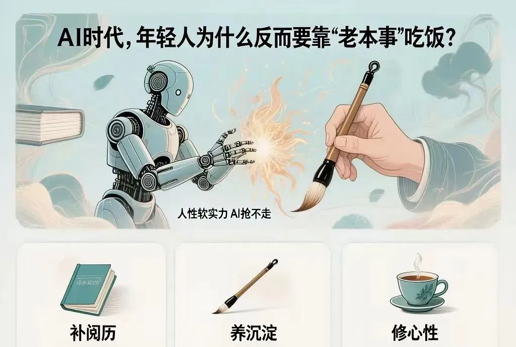 但修炼扎根人性、需要沉淀与阅历的心性软实力,才是AI时代,年轻人唯一的“终身铁饭碗”。