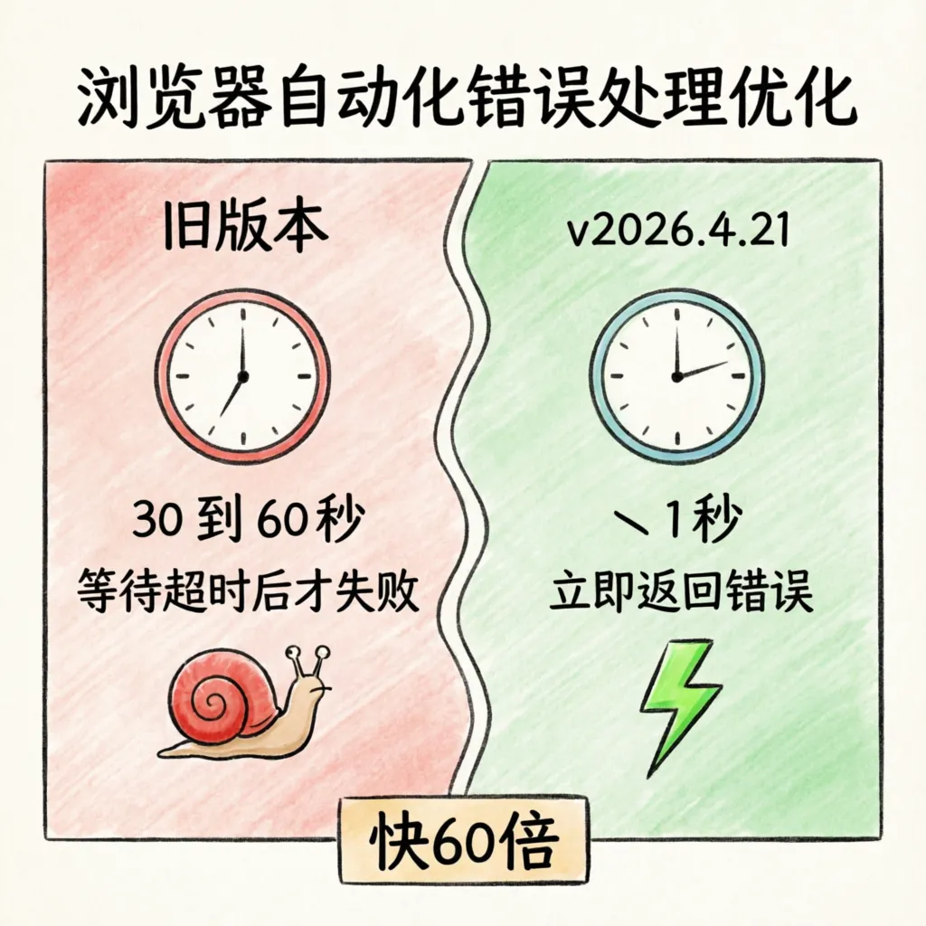 • ✅ 浏览器自动化优化 — 无效的 AX 引用快速失败,不再等待超时(#69924) -