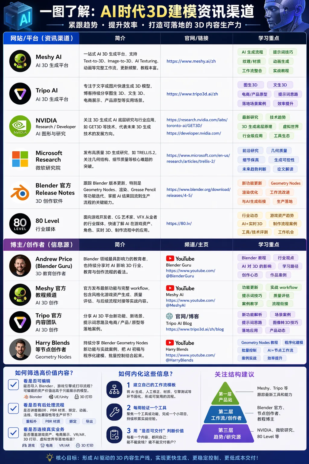 3D建模AI时代生存手册:12个必看渠道+4步内化心法(打破信息茧房)