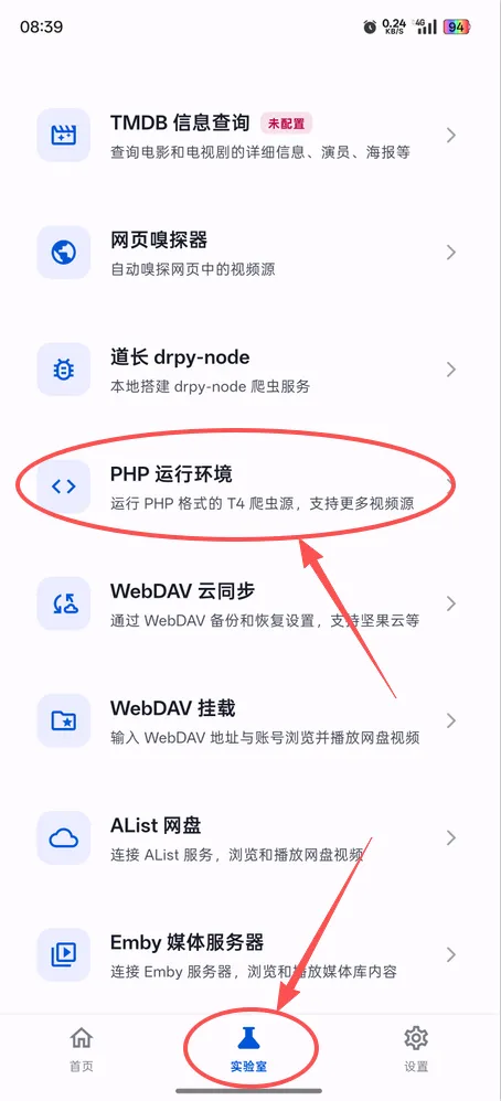 3、打开软件,点击【实验室】,然后点击【PHP运行环境】