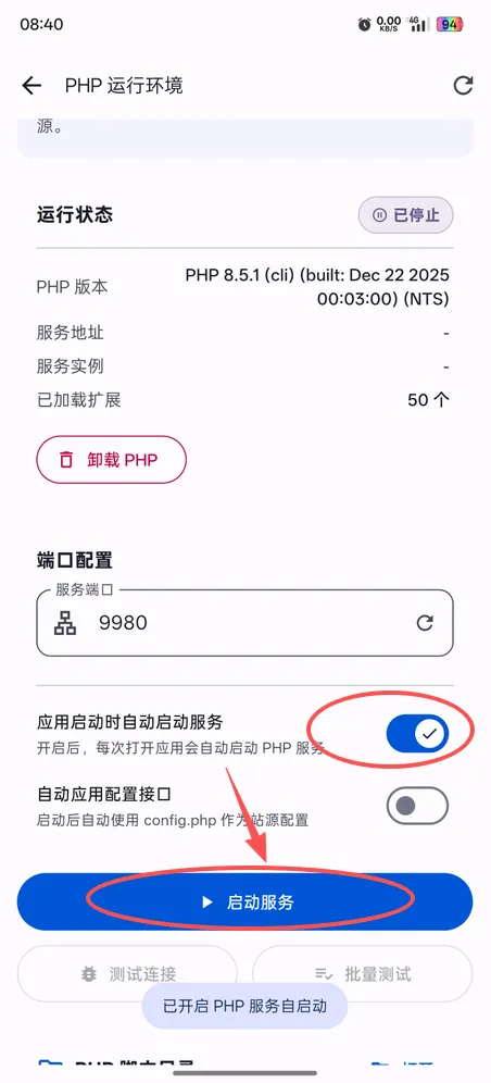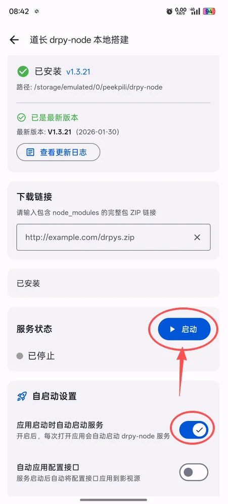 7、只要你本地包解压目录正确,这里是直新显示已安装的,直接钩选“自动启动服务”,再点击【启动】
