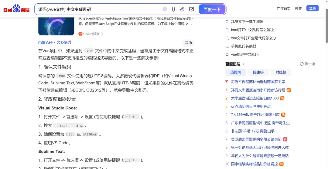 然后我找到找到文件打开看了一下,确实里面都是乱码。顺藤摸瓜思考了为什么会产生乱码的问题,我忽然想到有没有可能它写代码的时候不是会规范很多东西用了中文的原因,那推下去就是它可能是看不懂中文,那就是编码问题。