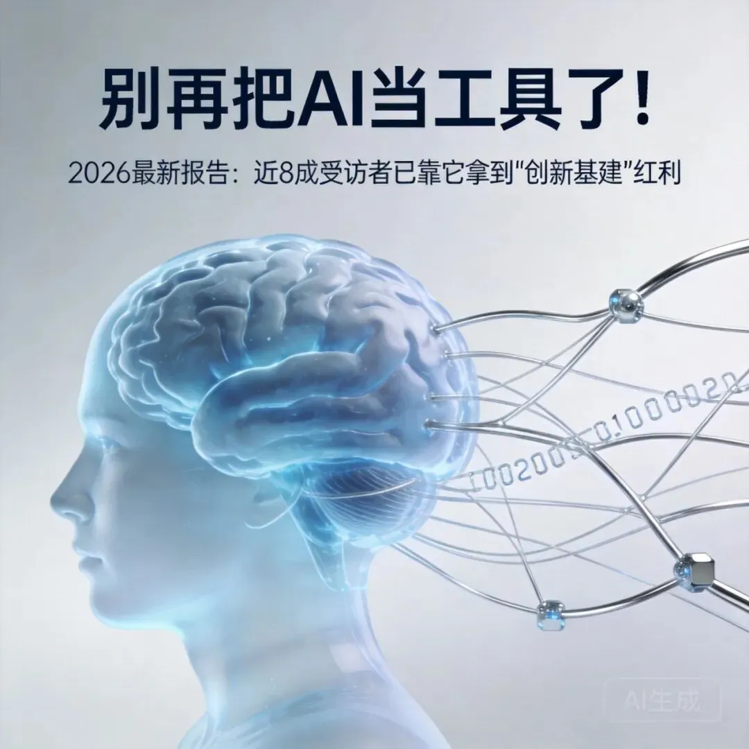 别再把AI当工具了!2026最新报告:近8成受访者已靠它拿到“创新基建”红利
