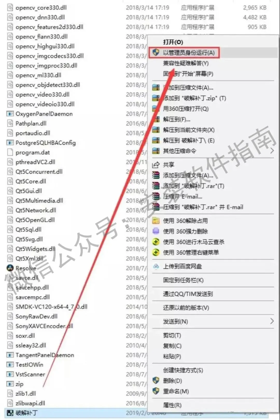 20.右键点【破解补丁】弹出框选择【以管理员身份运行】