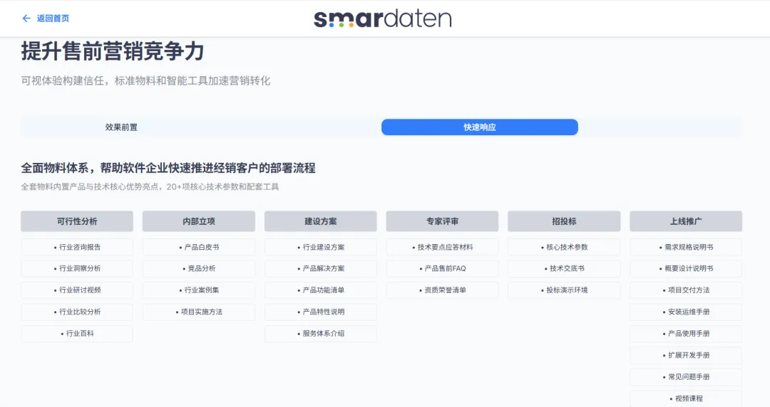 除此之外,平台还能为ISV营销团队提供全流程物料支持,包括自动生成Demo、项目方案等全套物料,大幅提升售前沟通效率与专业性。这种从“静态演示”到“动态实证”的转变,让ISV在高价值项目竞标中形成差异化优势,真正实现“高质量赢单”。