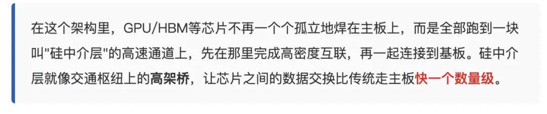 CoWoS的本质用一句话说就是:把计算和内存之间那条路修成”高速公路”。