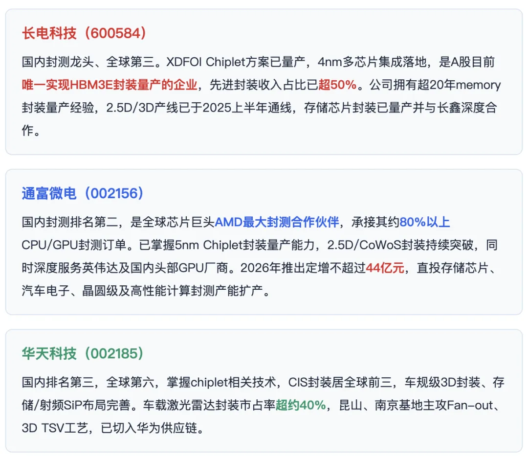 对于国内企业而言,先进制程受限,让先进封装成为国产算力产业链中自主可控最急迫且价值增量最可观的一环。正处在”技术突破”与”份额提升”的战略共振点上。整个逻辑正在由”扩产”切换到”技术差异化+分蛋糕“,谁能率先实现大尺寸+高良率+先进封装平台商业化,谁就站在了下一轮行情的起点上。
