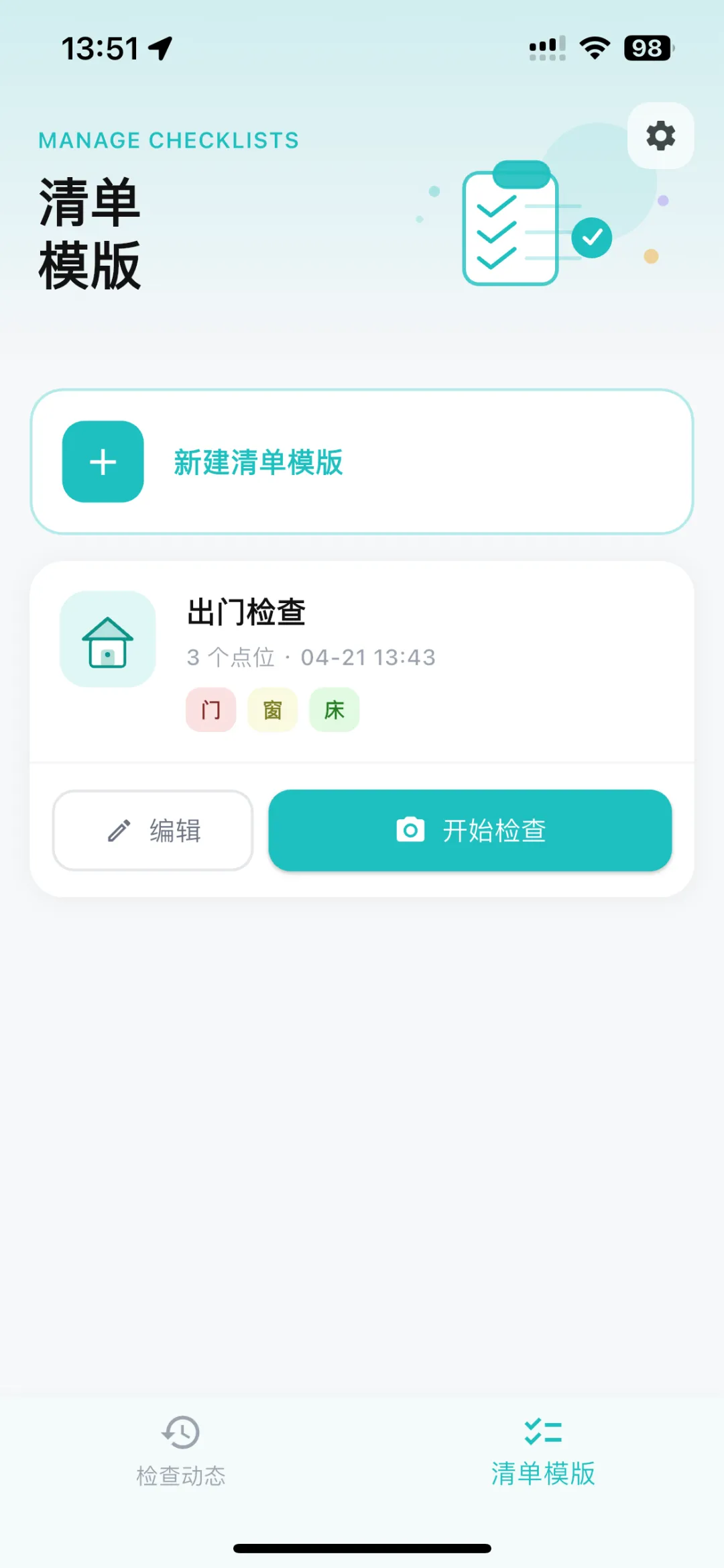 打开App,切换到“清单模版”Tab,点“新建”。
