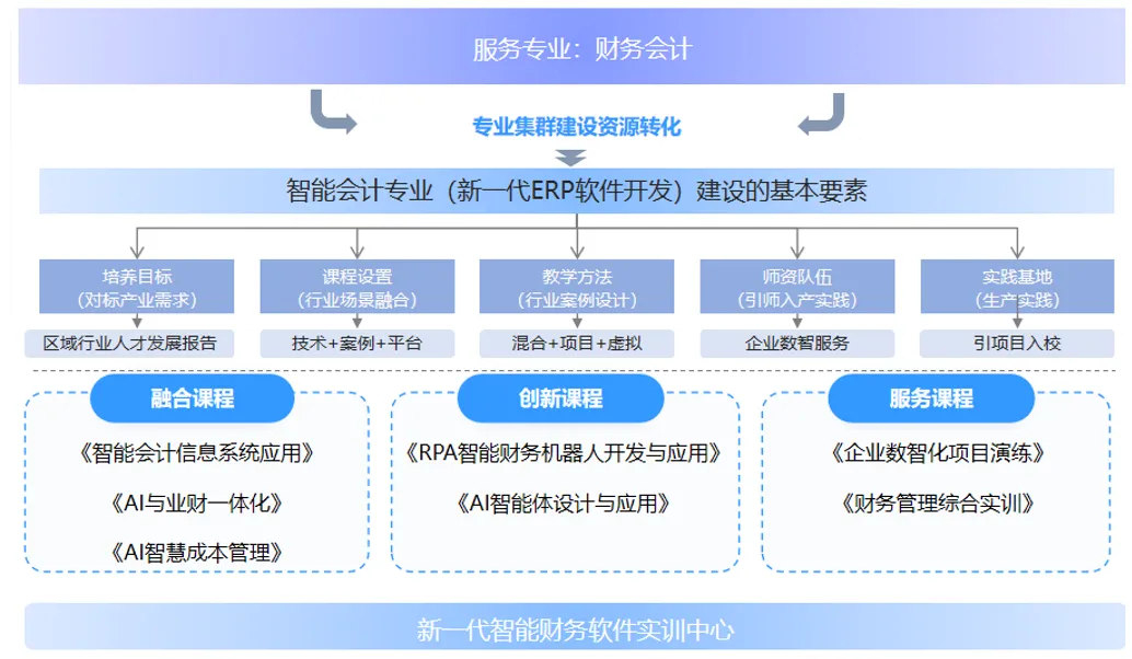 金蝶以服务专业、转化资源、对接产业为核心理念,构建“产业需求—课程重构—师资提升—实践落地”的闭环建设路径,通过“AI+场景”循序渐进地进行理论与实践融合、增加创新课程与服务课程,重构课程内容,持续动态适配产业需求。