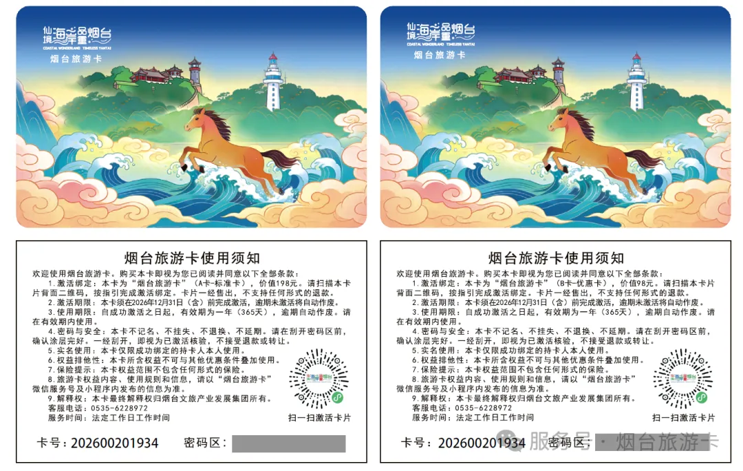 烟台旅游卡最终解释权归烟台文旅产业发展集团所有。