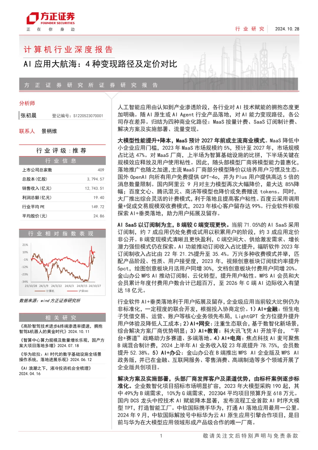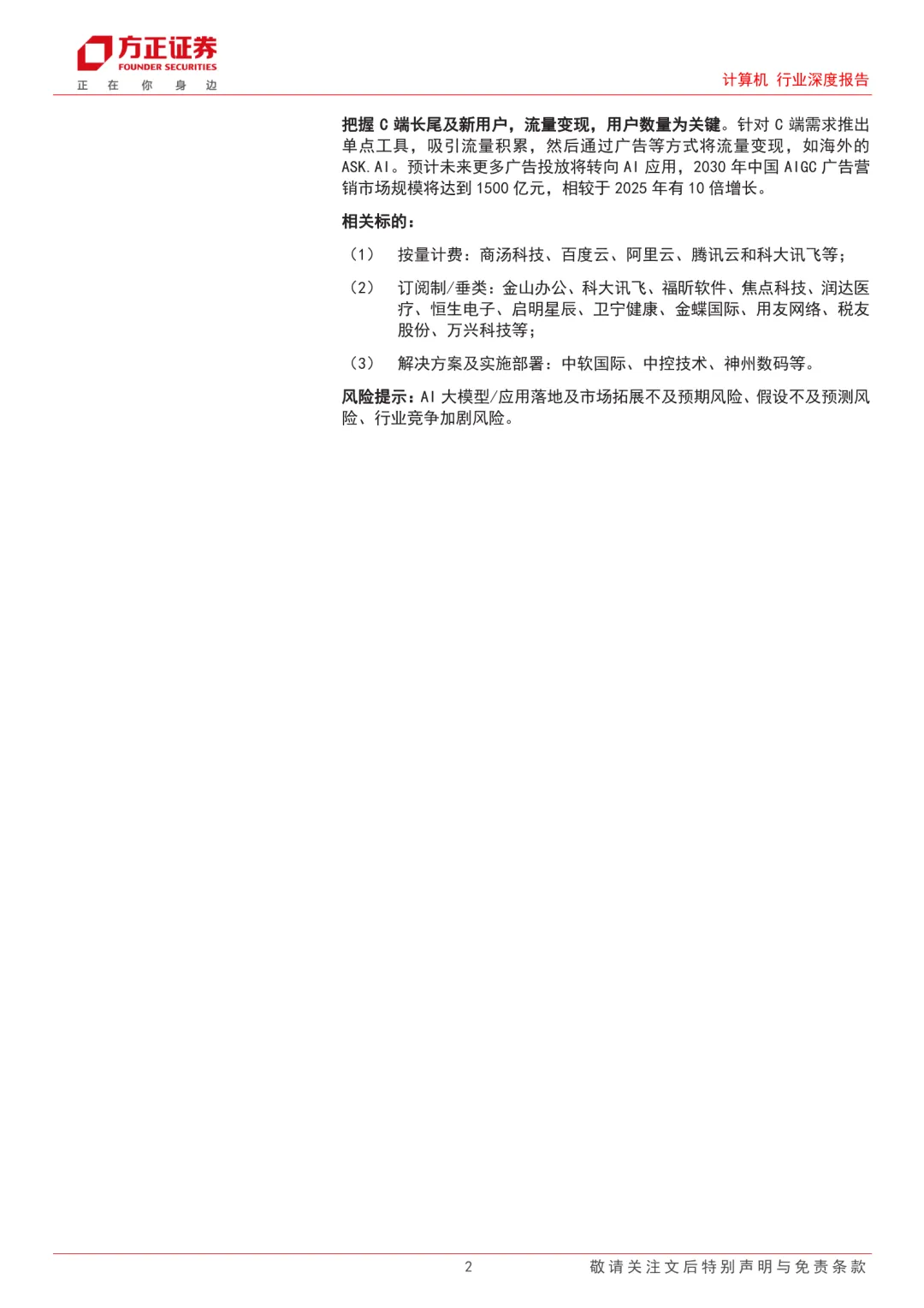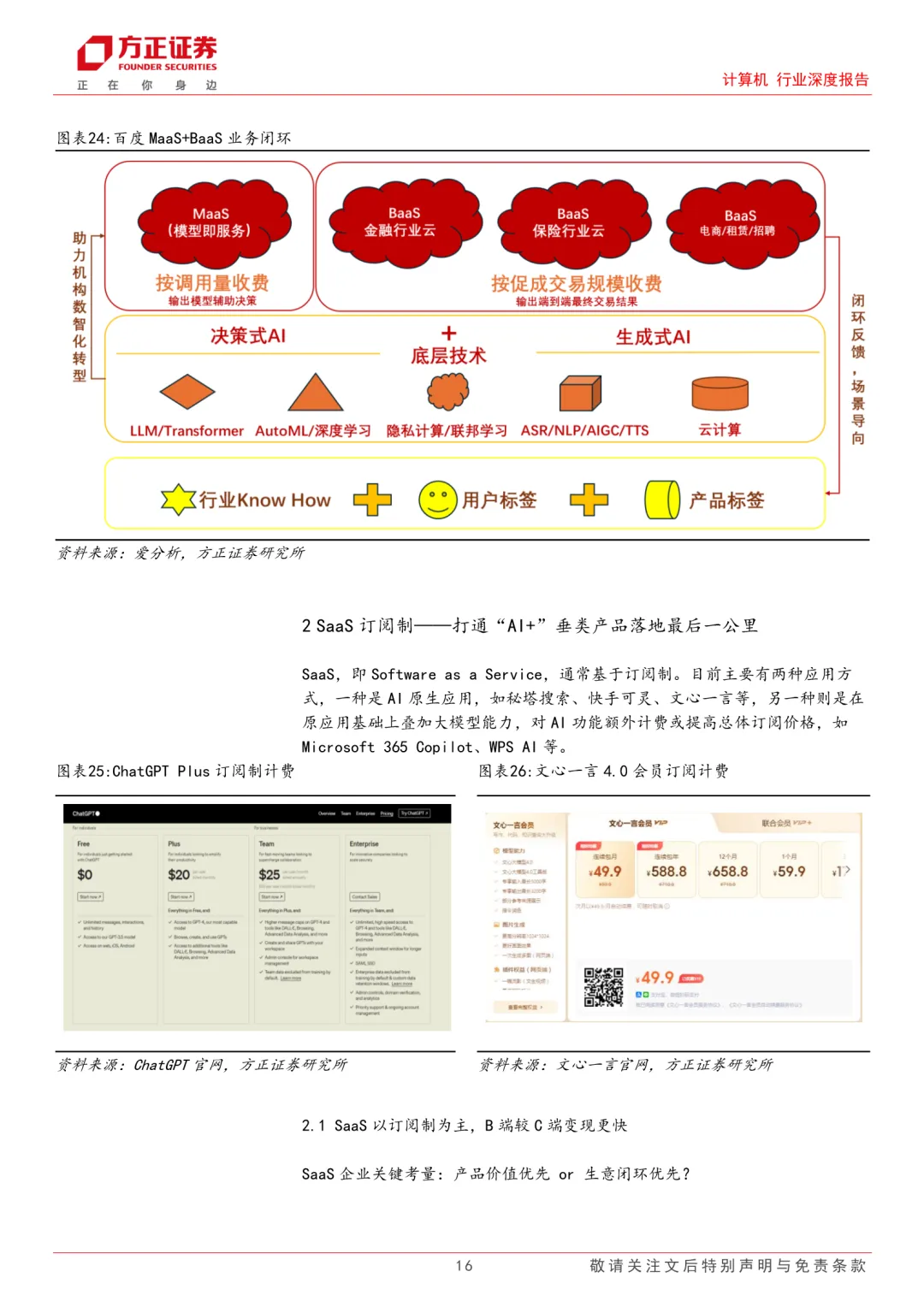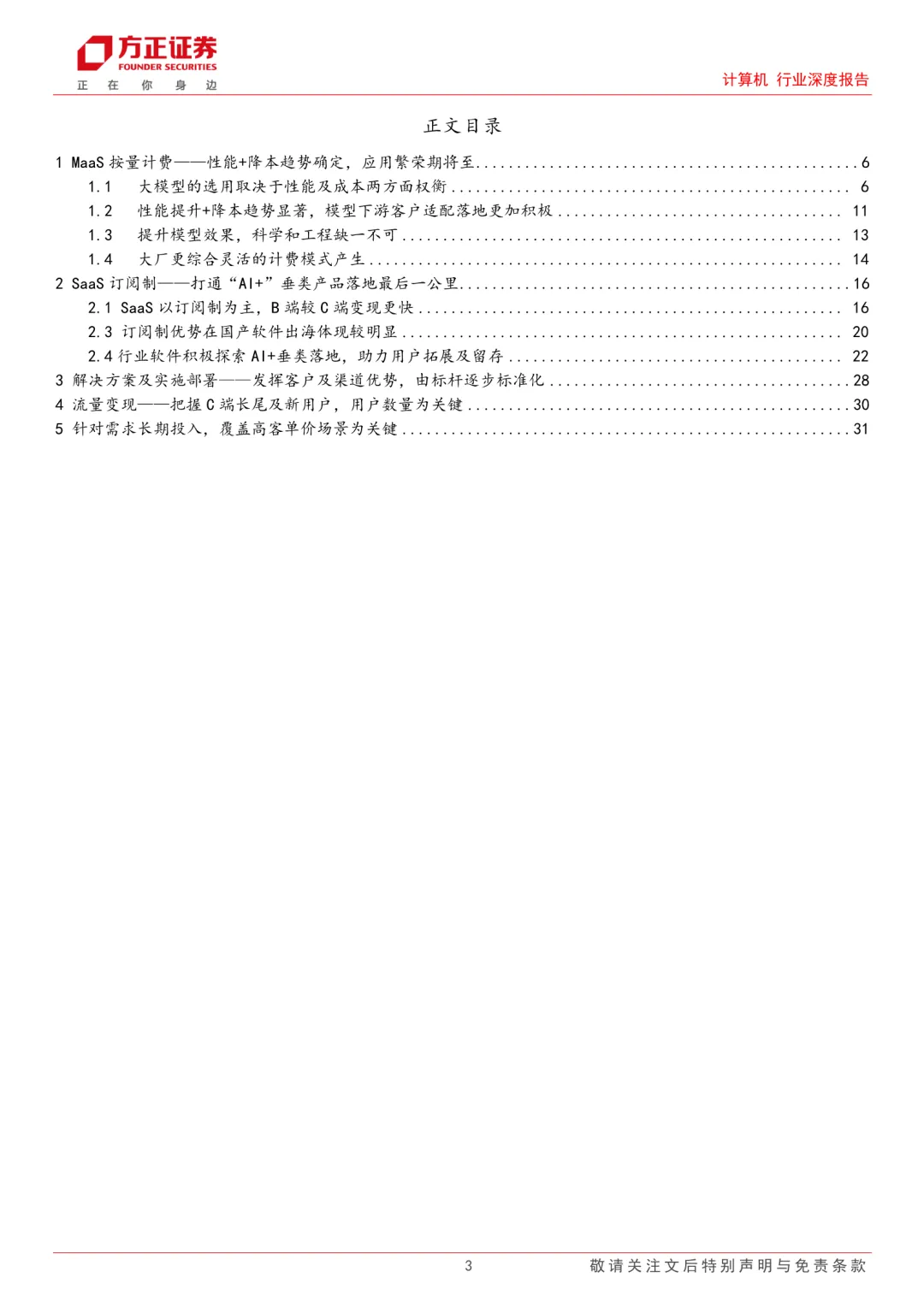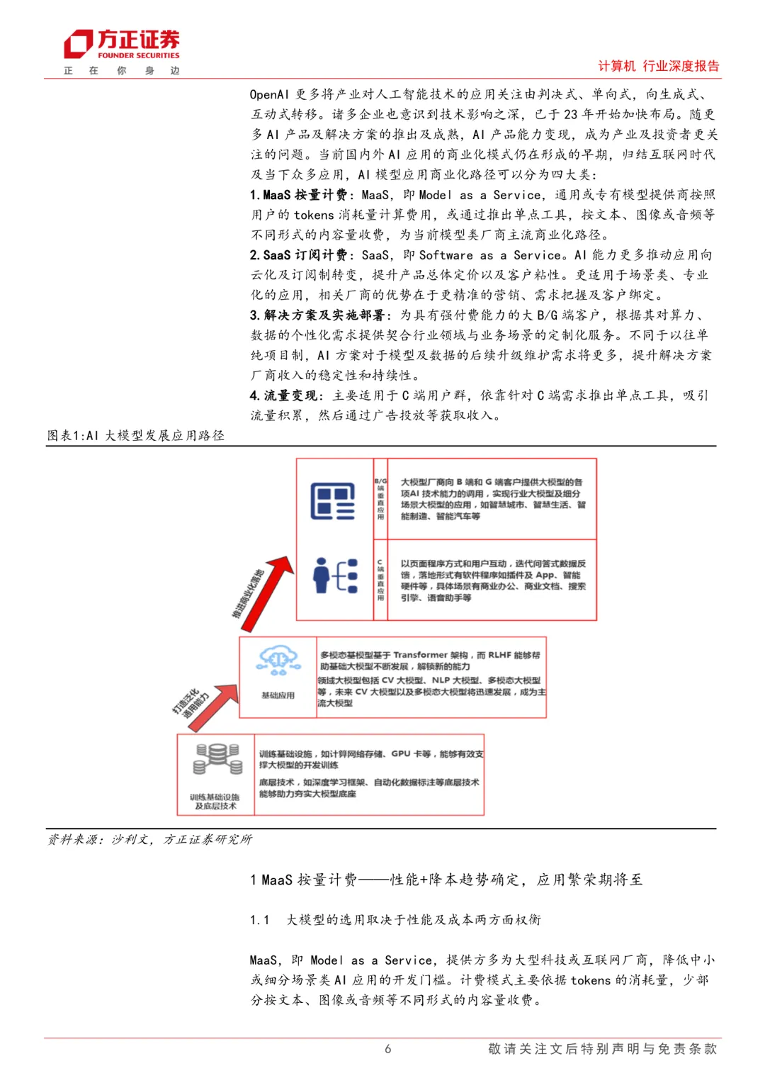 人工智能应用由认知到产业渗透阶段,各行业对AI技术赋能的拥抱态度更加明确。随AI原生或AI Agent行业产品落地,对AI能力变现路径,各公司存在差异。归结为四种商业化路径:MaaS按量计费、SaaS订阅制计费、解决方案及实施部署、流量变现。