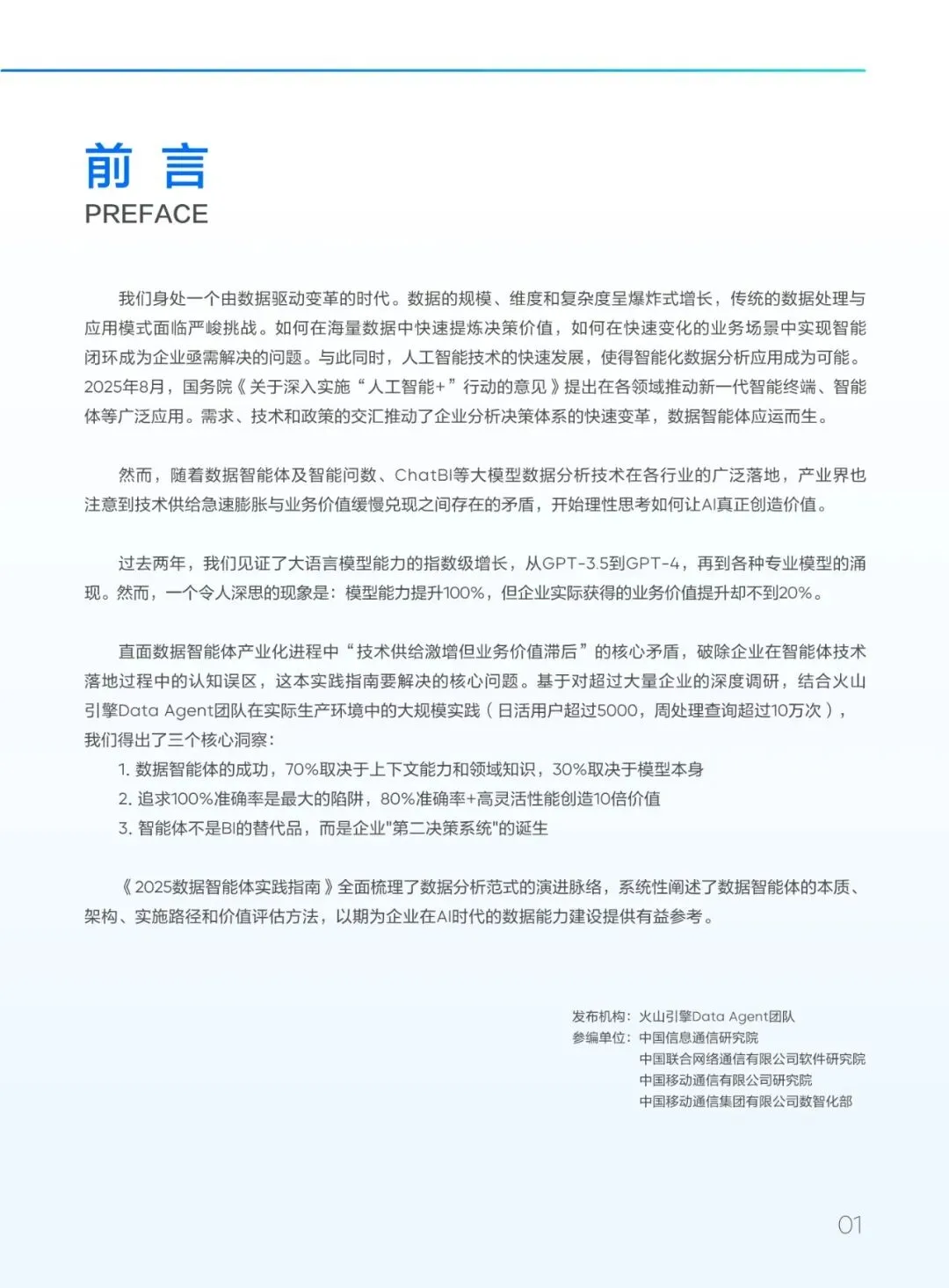 在人工智能技术迅猛发展的背景下,数据智能体正成为企业数字化转型的关键驱动力。火山引擎发布的《2025数据智能体实践指南》系统梳理了数据智能体的认知逻辑、技术架构、应用场景与产业未来,旨在帮助企业穿透AI热潮的迷雾,回归商业本质,构建务实、可持续的数据智能体系。