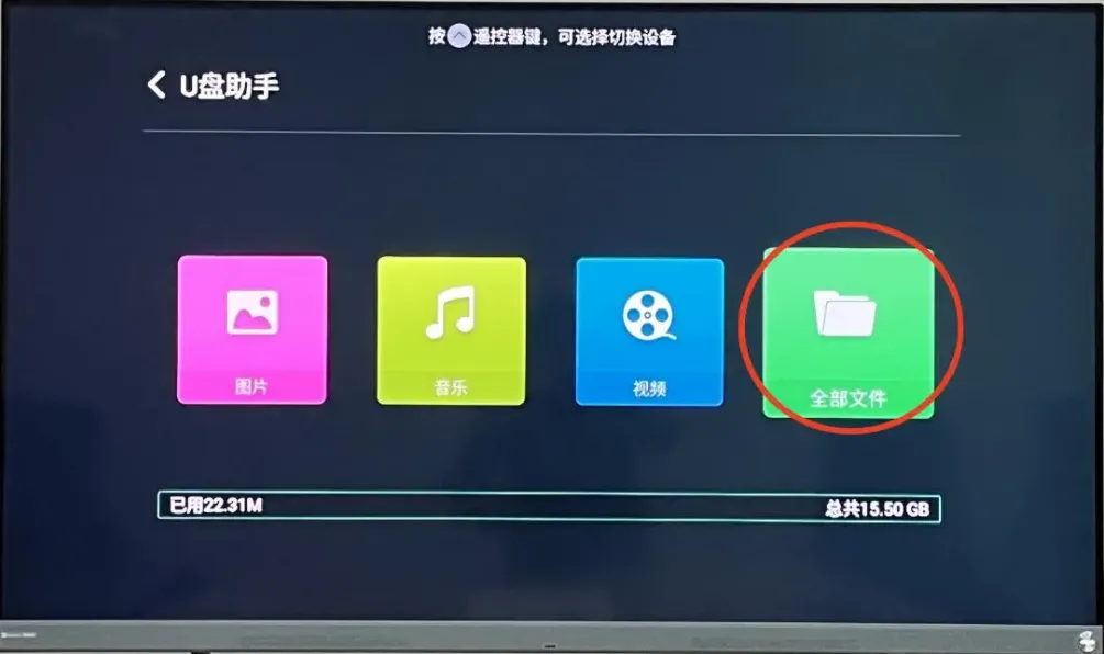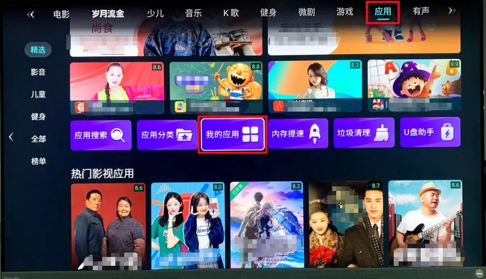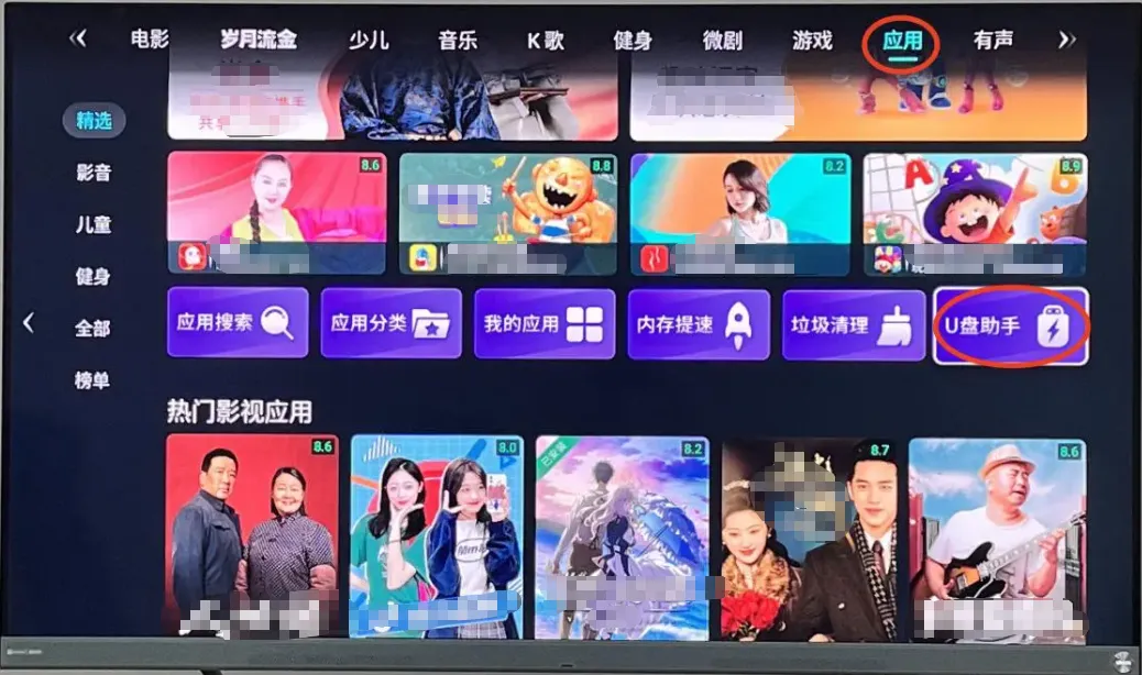 一、电脑上连接一个U盘,下载【当贝市场海信版】安装包并拷贝到U盘(注意:安装包的后缀为.apk)。把U盘接到海信电视的USB接口,在【应用】里打开【U盘助手】