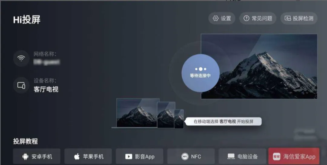 四、手机和电视连接同一WiFi。在电视里我的应用里找到HI投屏并打开,选择海信爱家APP-文件投屏。