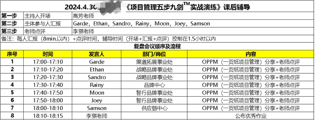 3、学会使用一页纸项目管理OPPM:将项目管理三大核心要素(WBS+CPM+RAM)整合在一张纸上,用于展示项目全貌,方便简洁地向客户和发起人做沟通与汇报。