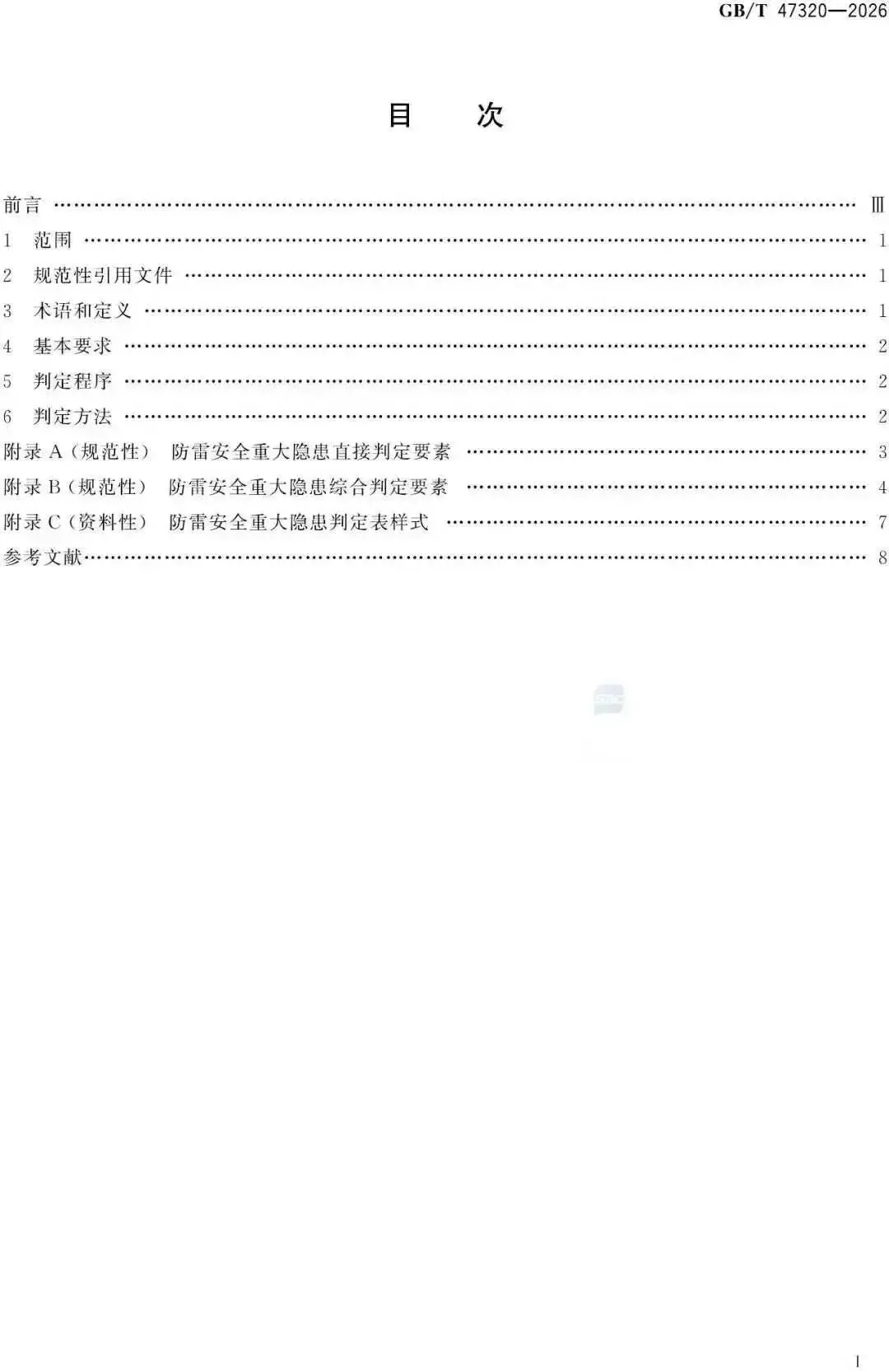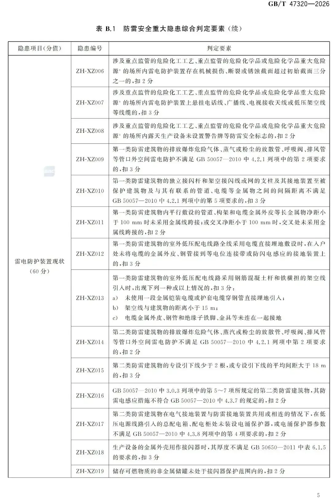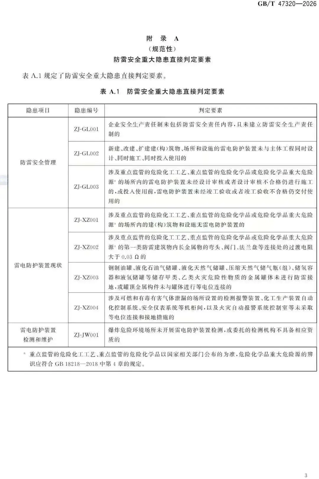 GB/T 47320-2026非强制标准,那么目前现行有效且具有强制性的防雷重大隐患还是:《防雷安全领域重大事故隐患判定标准(试行)》(中气安委办发〔2024〕1号)。