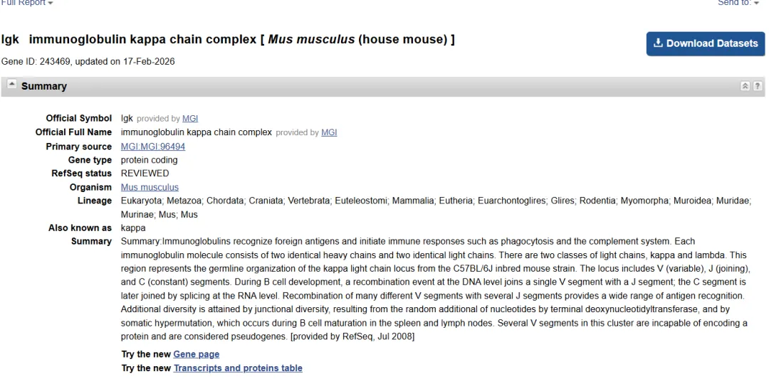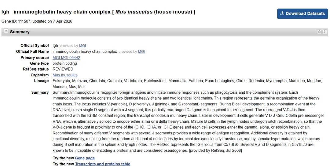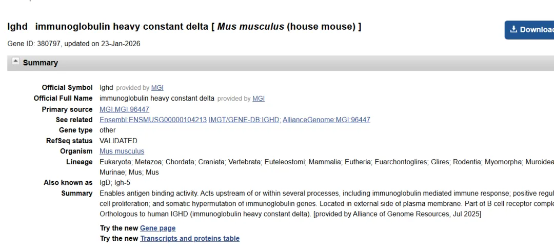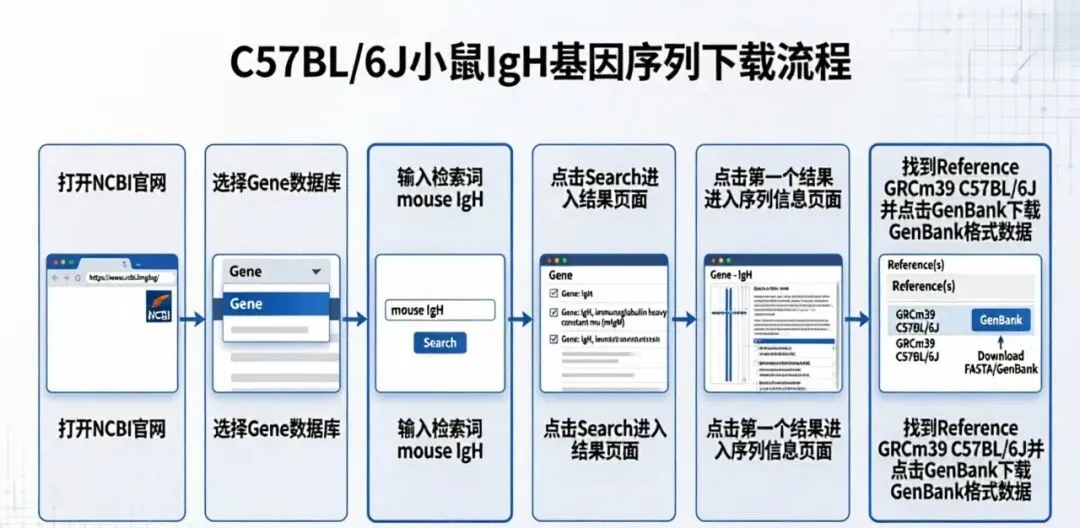 做抗体相关实验,第一步就是拿到准确的基因序列。很多同学在NCBI里翻来翻去,不是下错了版本,就是找不到对应品系。今天以C57BL/6J品系的小鼠为例,一步步带你从NCBI精准下载其抗体序列,建议收藏备用。
