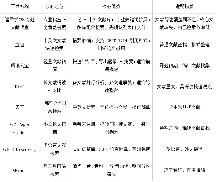 实测 8 款工具后我真心推荐:逢君学术的官网(https://www.fengjunxueshu.com/spcialLiteratureChecked?lz=ztwxdc324-gzh)—— 专业团队帮你扩展关键词、设计检索策略、跨库精准查找,先给文献列表确认,再交付原文,4 亿 + 资源确保不缺核心文献。不用再自己死磕检索,文献综述一次做到全面、规范、让导师满意!