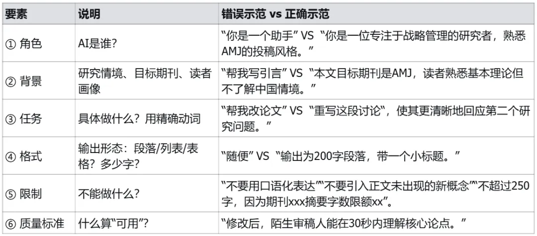 每个Prompt需包含 6 个要素,减少AI发散自由度