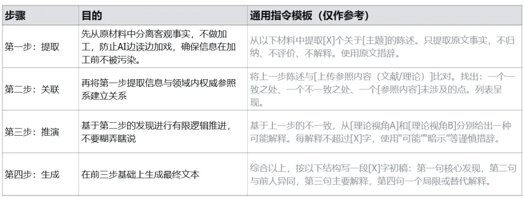 不要试图用一条指令就完成整节论文,AI一定会“糊涂”然后瞎讲。把此节任务拆成多个步骤,每步只让AI做一件事,我们人在每步结束时审核修正。
