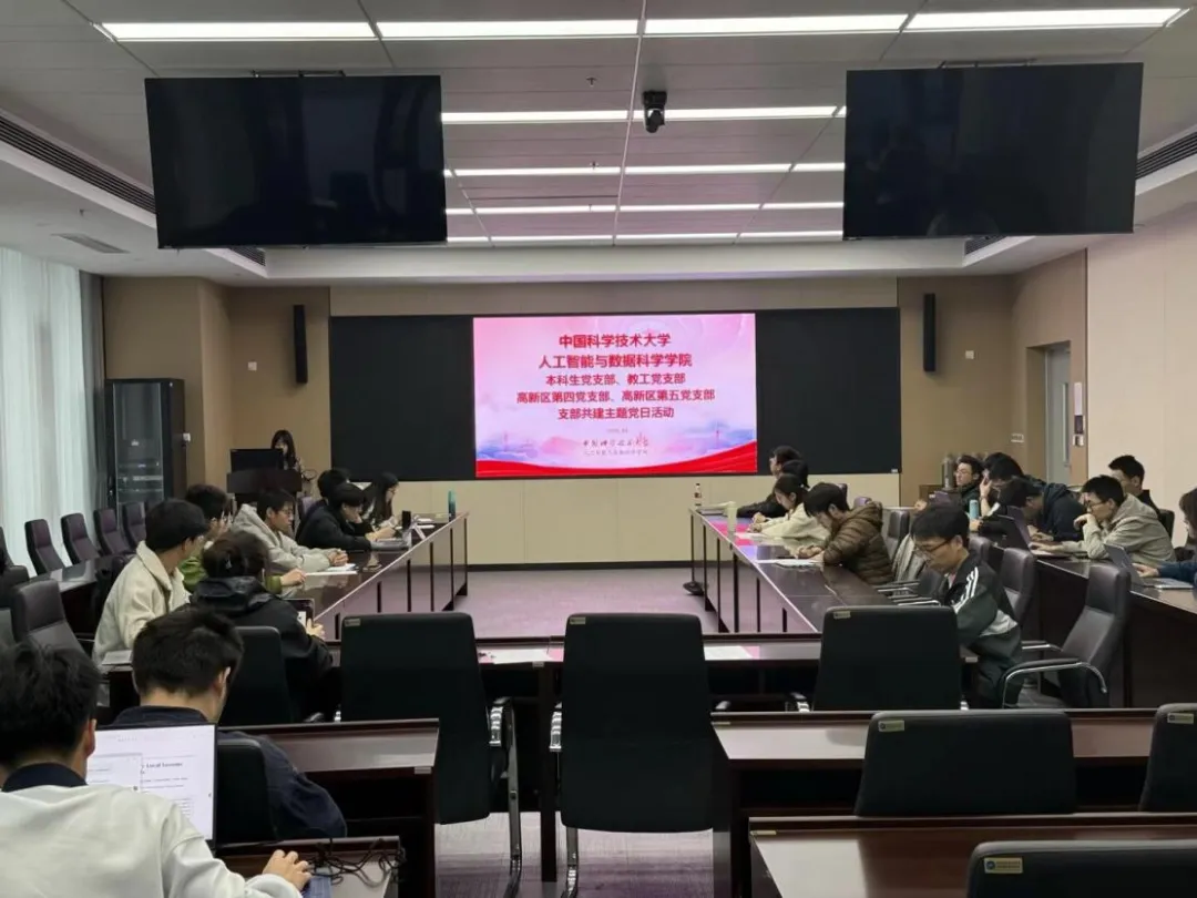 为深化党建引领,切实帮助青年学子规划科研成长路径,2026 年 4 月 22 日下午,学院本科生党支部联合教工党支部、高新区第四党支部、高新区第五党支部于高新校区学科 3 号楼 205 会议室共同开展“AI青年说”支部共建主题党日活动暨本科生党支部党员大会。此次会议由教工党支部副书记张姚主持,形式创新,师生党员齐聚一堂,共话科研与成长。