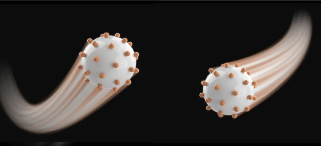 粒子拖尾效果在科研中是一个比较常见的表达技巧(离子、电子运动轨迹,物体移动方向,封面设计等)