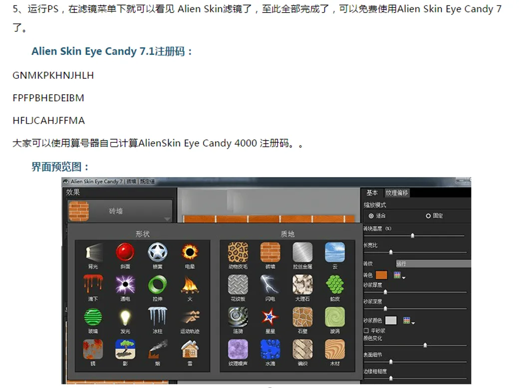 视频中所使用插件为Alien Skin Eye Candy 7PS特效插件,