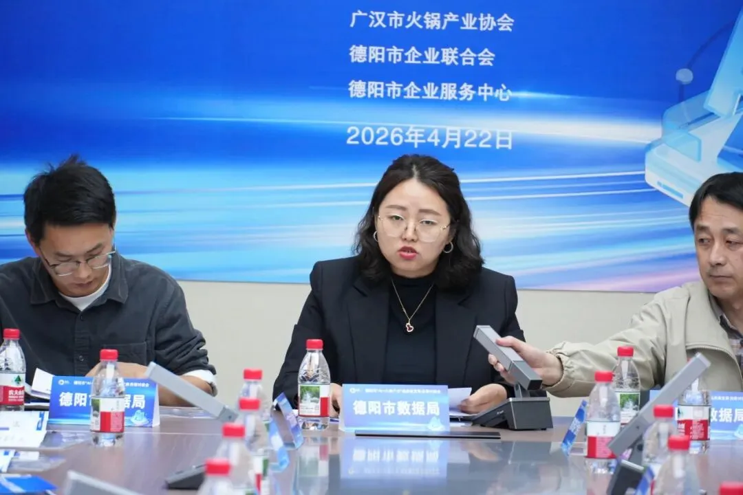2026年4月22日,由德阳市数据局主办,德阳市数字产业协会承办,德阳市火锅产业协会、广汉市火锅产业协会、德阳市企业联合会、德阳市企业服务中心联合协办的德阳市“AI+火锅产业”高质量发展供需对接会顺利举行。德阳市数据局、广汉市发改局分管负责同志参加会议。