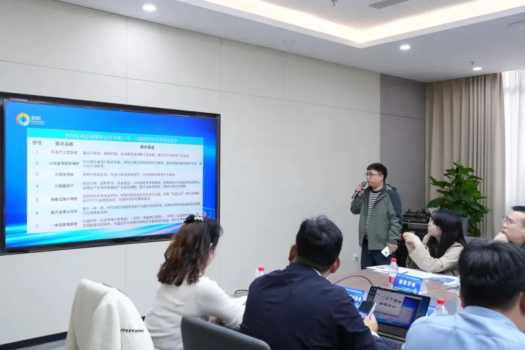 四川弘晟嘉瑞塑料包装有限公司作为火锅产业核心配套企业,围绕生产工艺优化、设备稳定运行、原料质量管控、数据整合应用等痛点,提出以 AI 算法优化工艺参数、开展设备预测性维护、实现原料智能筛选、整合全维度生产经营数据的转型需求,希望通过智能化改造提升生产效率与产品质量,更好支撑德阳火锅产业高质量发展。