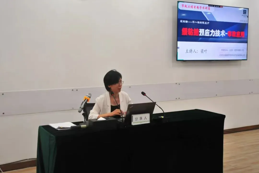 最后,北京兆福基科技公司设计总监梁叶作《缓粘结预应力技术——市政应用》的主题报告。报告详细介绍了缓粘结预应力系列产品体系,系统阐释其前期可张拉、后期能固化,最终有粘结的工作机理。同时全面解读国家、行业、地方及团体标准,展示摩擦损失、抗弯性能、抗震性能、粘结锚固、耐久性等多项关键指标,并结合市政桥梁、地下管廊、净水厂等大量工程案例,并带来低摩阻、智慧钢绞线、专用群锚、缓粘结剪力钉等最新技术资讯,充分体现缓粘结技术在施工便捷、受力可靠、耐久性强、经济性好等方面的突出优势,为市政工程预应力设计与施工提供新一代解决方案。