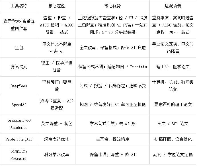 8 款 AI 查重降重工具核心实测对比表