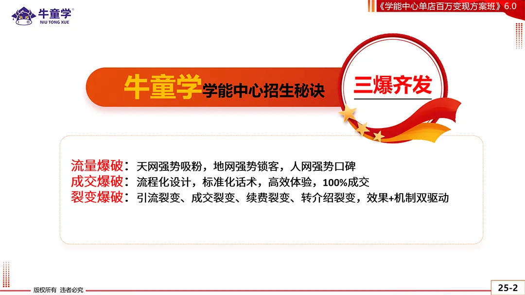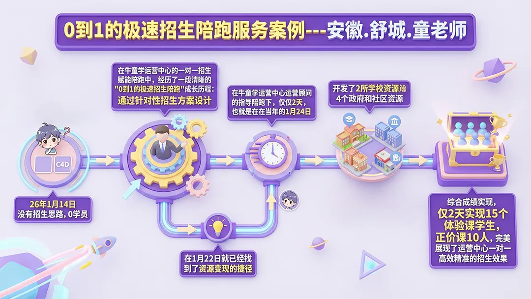 针对机构在招生中普遍面临的“无策略、无计划、无方案、无话术、无培训、无复盘、无数据、无追踪、无裂变,线上不会做、线下出不去”等现实痛点,林总通过对牛童学诸多成功招生案例的系统剖析,逐一拆解背后的方法与逻辑,帮助学员找到突破困局的实战路径。