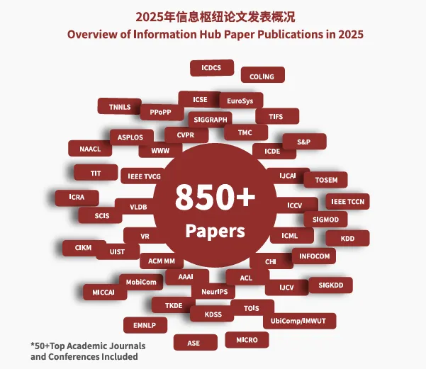 2025年,信息枢纽师生共发布论文超850篇,斩获论文类奖项二十余项,在IEEE INFOCOM、EuroSys、ACM CHI等CCF A类顶尖会议上屡获殊荣。