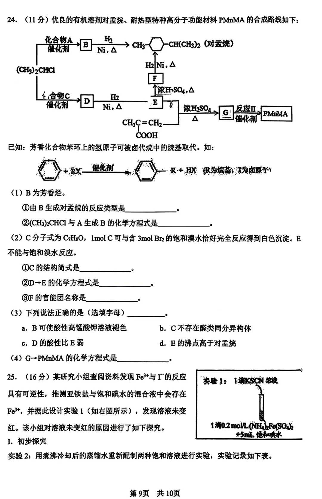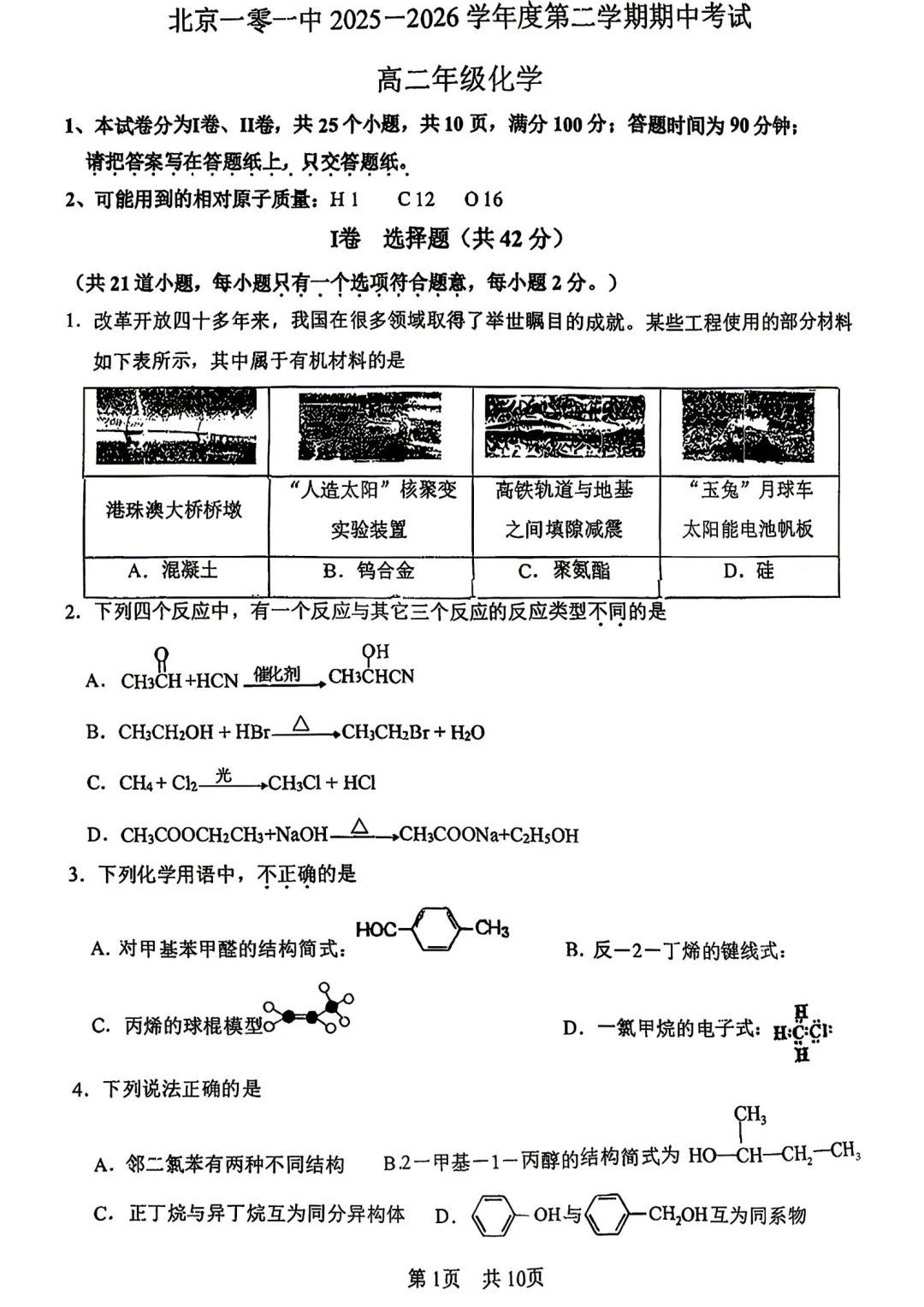 下载练习!2026北京一零一中高二(下)期中化学试题