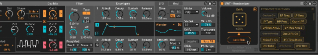 Randomizer 的核心功能在于为 Ableton Live 内置或第三方的任意设备(涵盖乐器、音频效果器及 MIDI 效果器)提供一键式随机变量生成。用户仅需将该设备放置于目标插件之后,点击 “骰子” 图标,即可瞬间生成一套全新的参数组合。